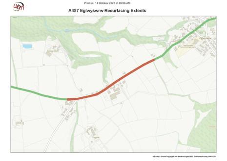 Southbound – Continue north on the A487 until you reach Ridgeway roundabout, take the third exit A478. Continue south along the A478 for approximately 34Km until you reach the Penblewin roundabout. Take the 4th exit A40 towards Haverfordwest. Continue along the A40 until you reach Scotchwell roundabout, take the 2nd exit north and continue north on the A40 until you reach Fishguard. At Fishguard continue north on the A487 until you Reach Eglwyswrw.